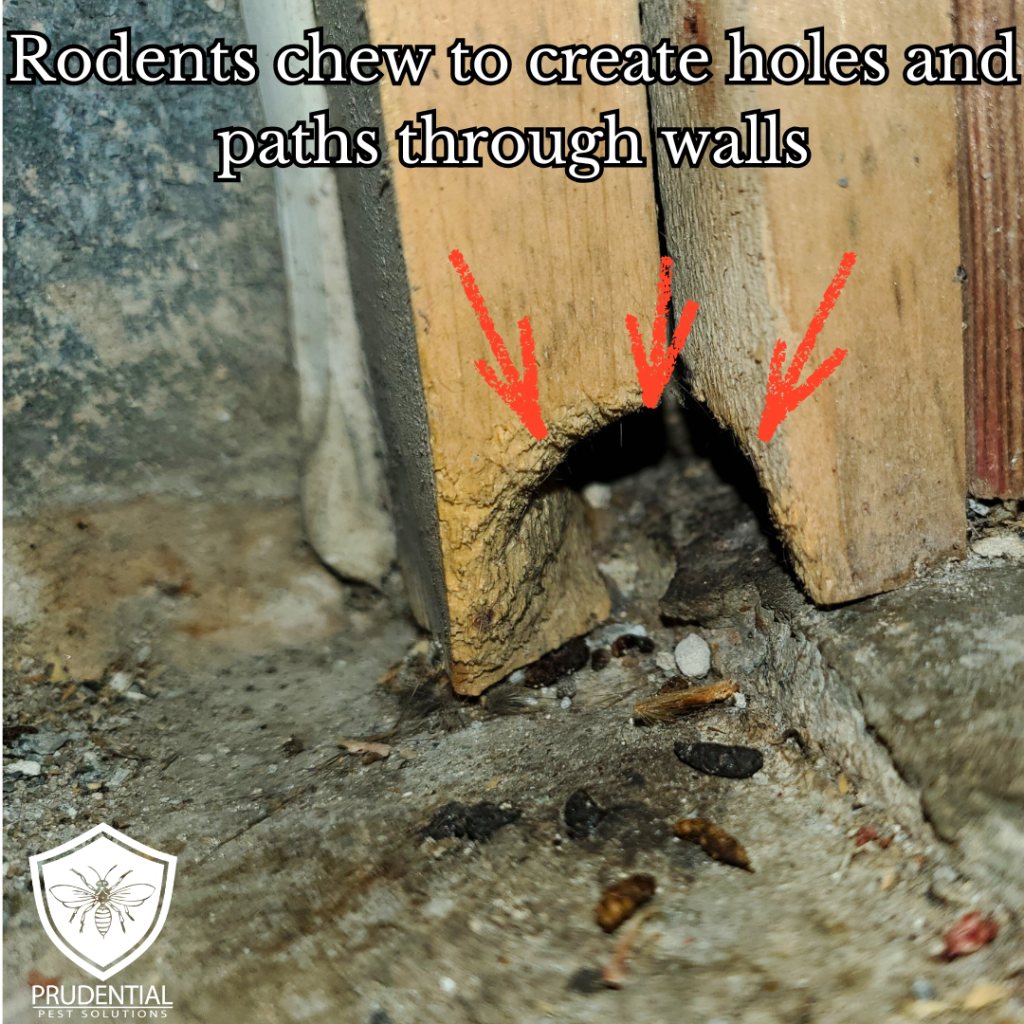 All rodents have an instinctual need to chew. They will also chew to create entryways through walls, floors, ceilings, and cabinets.